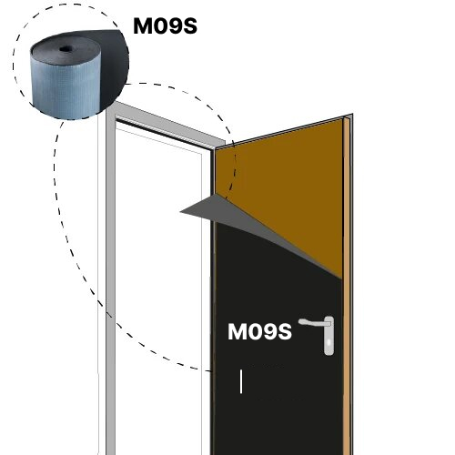 Izolarea fonică a ușilor din lemn poate fi împărțită în trei etape - etanșarea tocului, aplicarea covorașului izolant M09S și spumei cu celule deschise L10S. Ușile standard au dimensiunea de 205 x 80 centimetri, ceea ce înseamnă că pentru realizarea tuturor lucrărilor avem nevoie de aproximativ 6 metri liniari de etanșare și 2 metri pătrați de covoraș (inclusiv rezerva necesară).